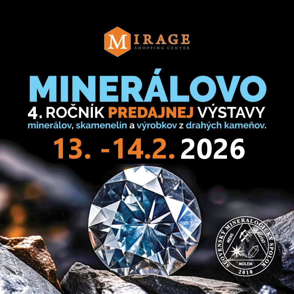 Bratislavské mineralogické dni, Kde: Cultus-Dom kultúry Ružinov, Ružnovská 28, Bratislava, Kdy: Sobota 07. 03. 2026, od 9:00-15:00. Kdy: sobota 9:00 - 15:00; Vstupné 2 €. Martin Števko, e-mail: