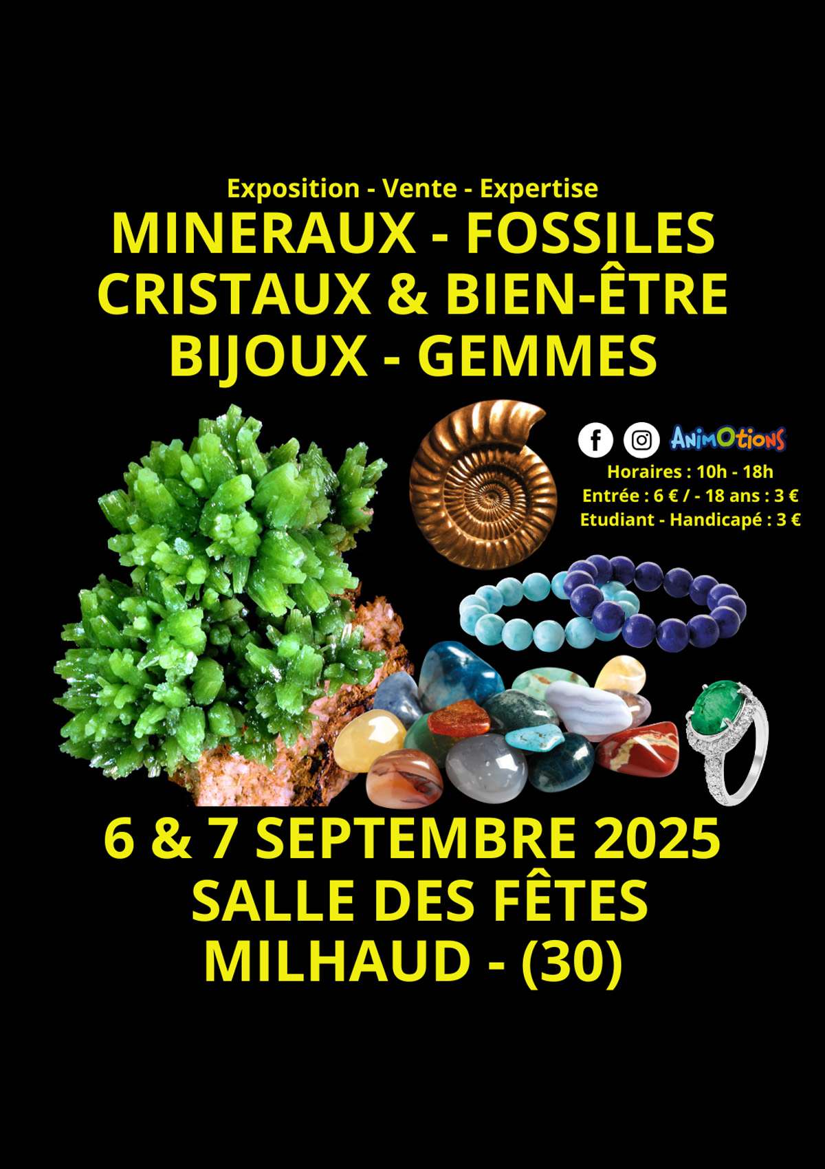 2ème Salon Animotions : Minéraux, Fossiles, Gemmes, Météorites et Bijoux,Salle des Fêtes, Milhaud, proche Nîmes, Contact : M Blanc Richard - 06.73.10.96.46