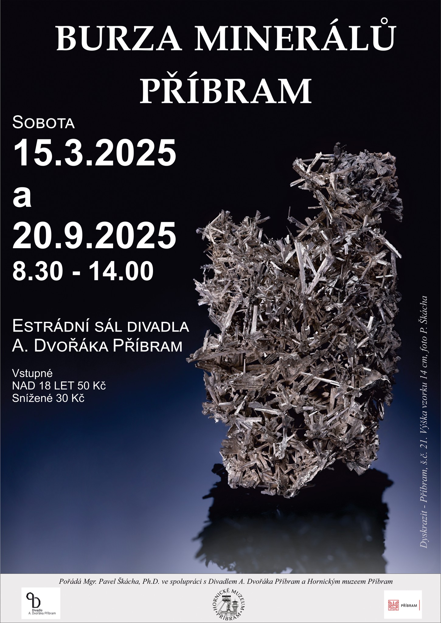 6. prodejní a výměnná burza minerálů a fosilií, Hornický skanzen Mayrau, Vinařice u Kladna 56. Pro veřejnost: 9:00 -16:00 hod, pro vystavovatele od 7:00 hod. Bohatý doprovodný program, prohlídka skanzenu, rýžování zlata, hledání meteoritů, hledání zkamenělin na odvalu dolu Mayrau, Kontakt: Mgr. M. Bergerová, 606 844 167, e-mail: