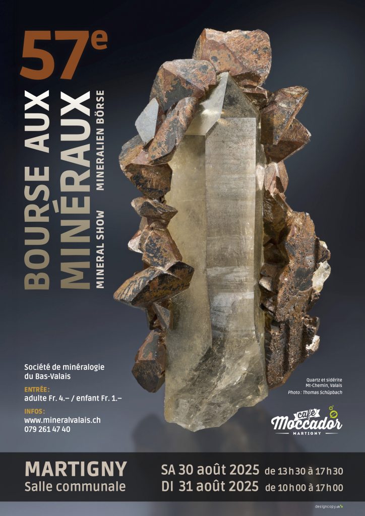 57. Mineralienbörse; Sa 14-17.30; So 10-17; Salle Communale, 6, Av. Du Gd-St-Bernard. V./A.: S. Filliez, Ch. des Grands Vergers 13, CH-1934 Bruson, E-Mail