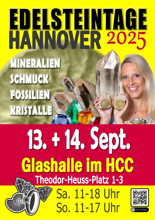 „Festival der Kristalle 2025“ (Int. Haslacher Mineralientage); Sa 10-18, So 11-17; Stadthalle und Vorplatz, Hauptstr.1a, 77716 Haslach. V./A: G. & F. Heizmann, Am Kastaniendobel 2, 77709 Wolfach, Tel. 0151-11837317 o. 0151-68579828, Fax 07834-8670848, E-Mail