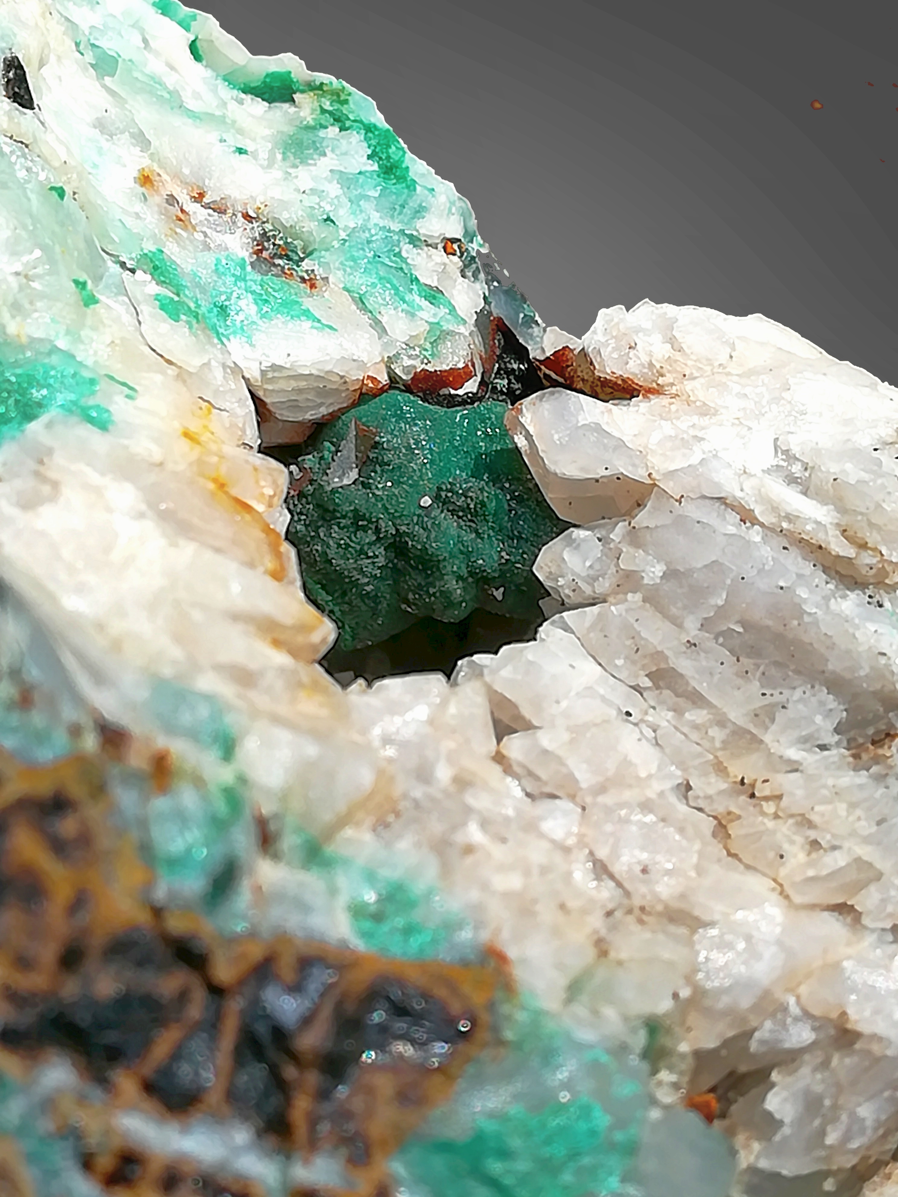 Ankerit, Azurit, Brochantit, Chalkozín, Chalkopyrit, Chryzokol, Kuprit, Galenit, Goethit, Křemen, Lepidokrokit, Limonit var. Stilpnosiderit, Malachit, Měď, Psilomelan, Pyrit, Tenorite