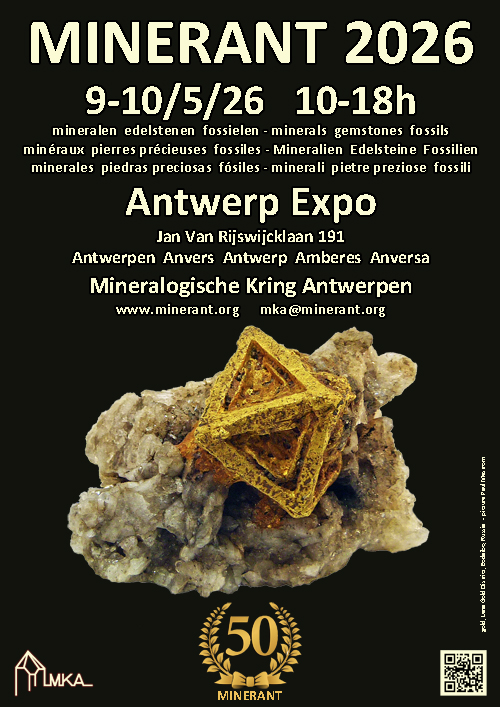 Minerant 2026, 50ième bourse internationale des minéraux et fossiles. Belgium jubilee fair!